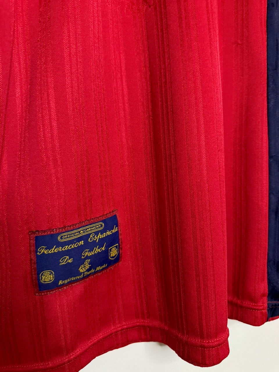 Own a true 90s classic with this Spain 1996 home shirt. With its vintage design and bold colours, it’s perfect for fans of old-school international football. Great for wearing or displaying. Condition: Very good